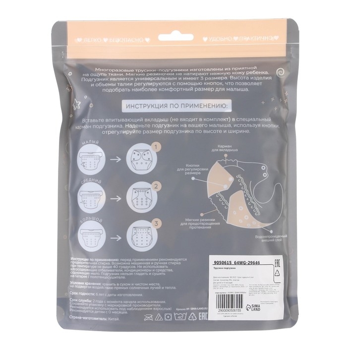 Трусики-подгузник, многоразовый, с вкладышем «Бабочки», Крошка Я