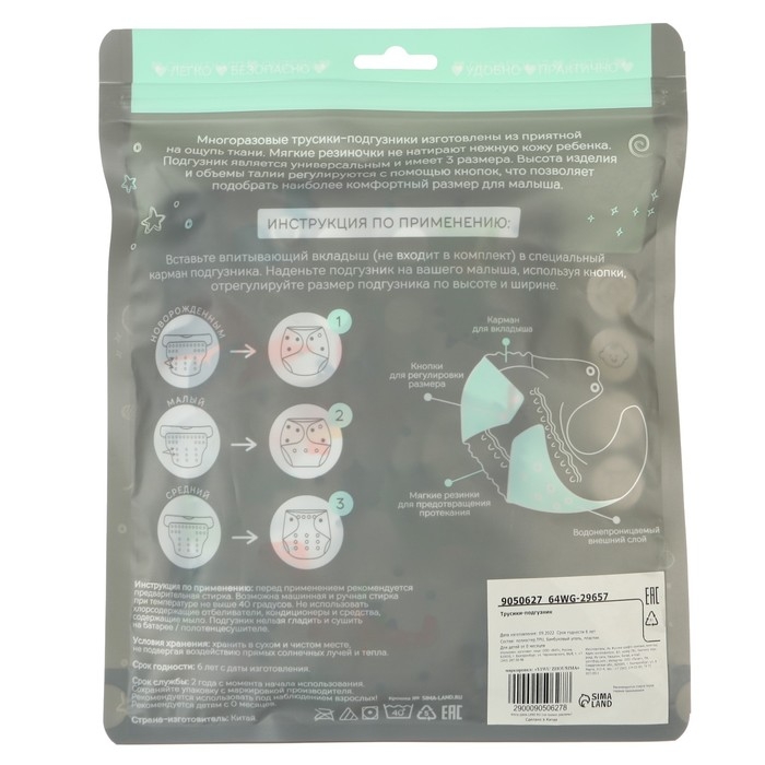 Трусики-подгузник, многоразовый, с вкладышем «Бабочки», Крошка Я