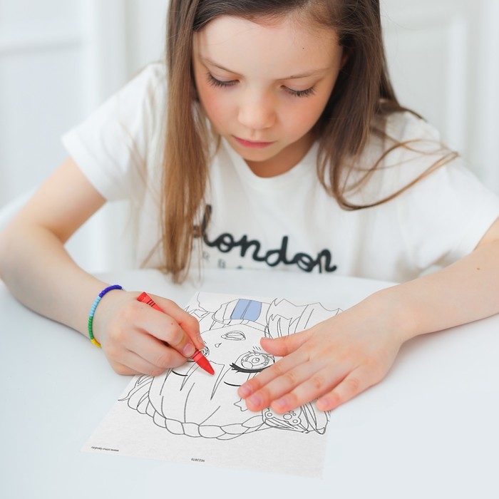 - Раскрасьте восковыми мелками персонажа.