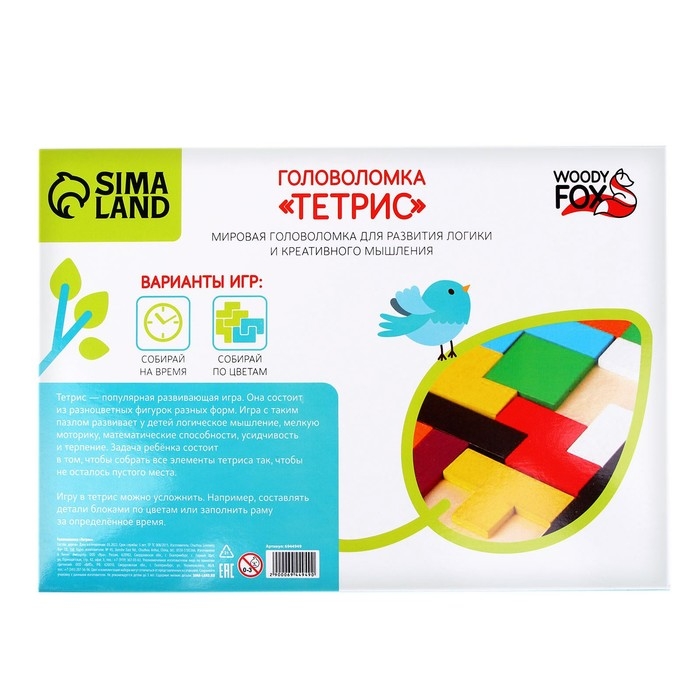 Тетрис — любимая игра детей и взрослых. Увлекательный процесс складывания фигурок поможет потренировать логическое мышление и внимательность. Игрушка изготовлена из дерева, а значит, она прочная и безопасная для детей.