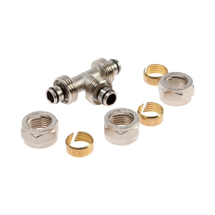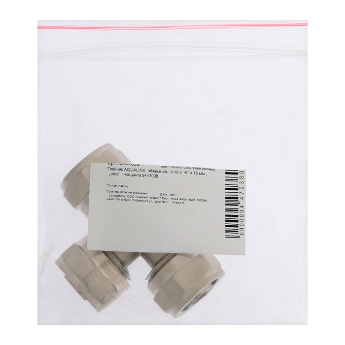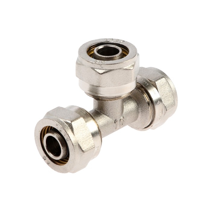 Тройник AQUALINK, обжимной, d=16 х 16" х 16 мм , цанга/цанга/цанга