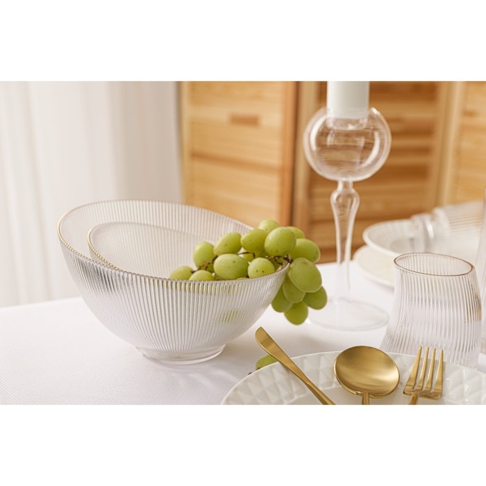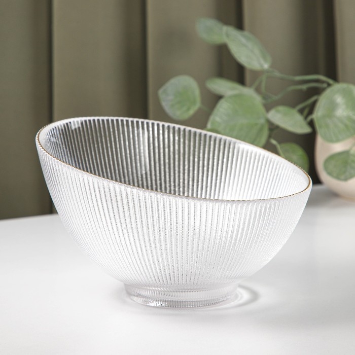 Салатник «Орион» изготовлен из качественного и прочного стекла, имеет необычную форму и красивый рельеф и отводку золотом по краю. Такой салатник подойдёт для классической сервировки и фуршета.