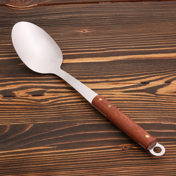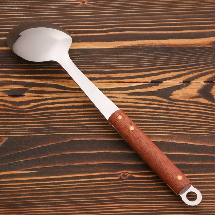 Ложка сервировочная с деревянной ручкой 35 см, черпало 7х11 см