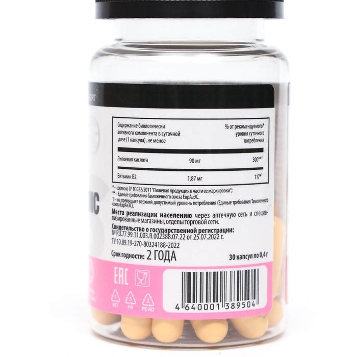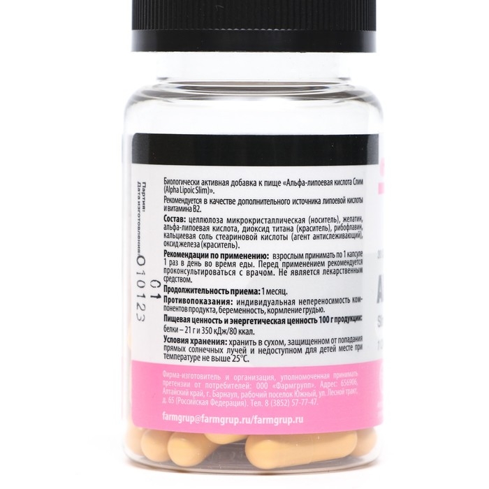Альфа-липоевая кислота Slim - биологически активная добавка к пище, рекомендуется в качестве дополнительного источника липоевой кислоты и витамина В2.