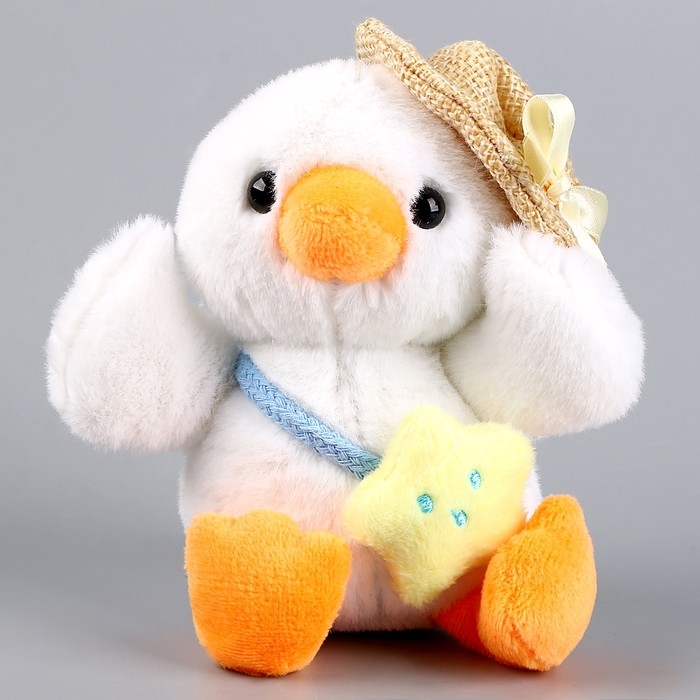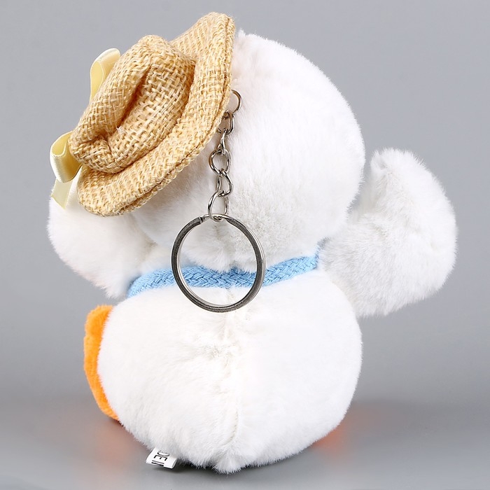 Мягкая игрушка «Утёнок в шляпке» на брелоке, 11 см, цвет белый