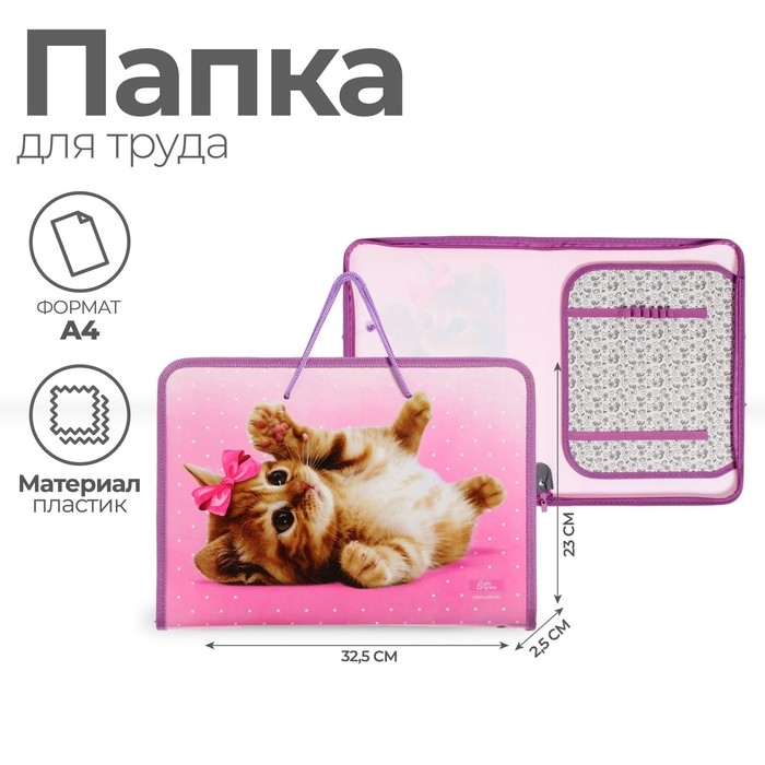Папка для труда А4 с ручками, 325 х 230 х 25 мм, молния вокруг, откидная планка, пластиковая, ПТР-6 Calligrata "Самая милая"