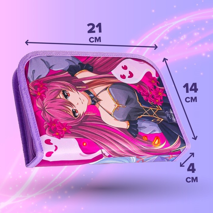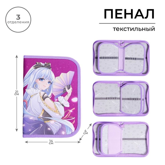 Пенал 3 секции, вкладка внутри, 140 х 210 х 40 мм, тканевый, Calligrata TOP Block "Аниме"