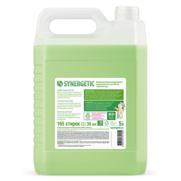 Кондиционер-ополаскиватель для белья Synergetic "Райский сад", биоразлагаемый,гипоаллергенный,5 л