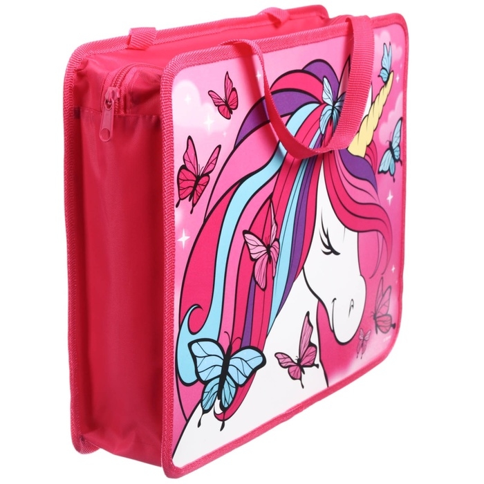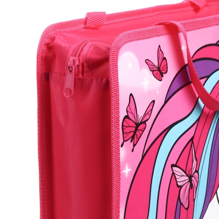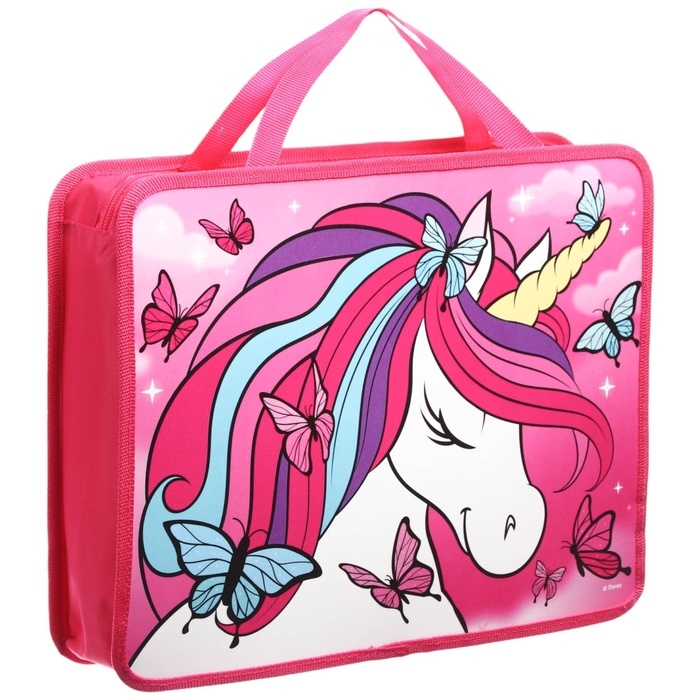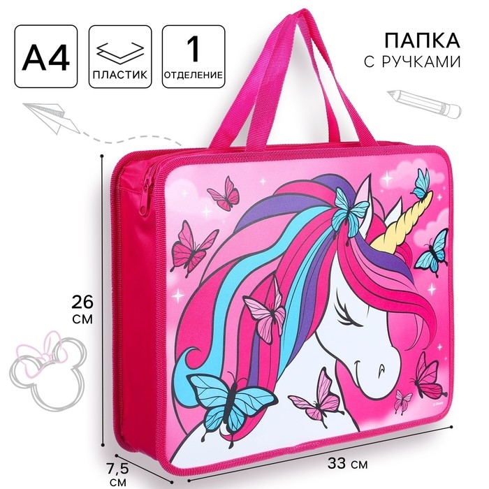 Папка пластиковая с ручками А4, на молнии, 75х330х260 мм, Минни Маус и единорог