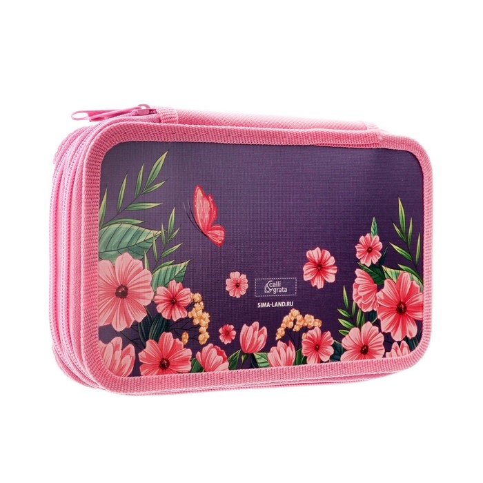 Пенал 2 секции, 125 х 205 х 40 мм, Calligrata 30П26/2 "Кот в цветах", ламинированный картон