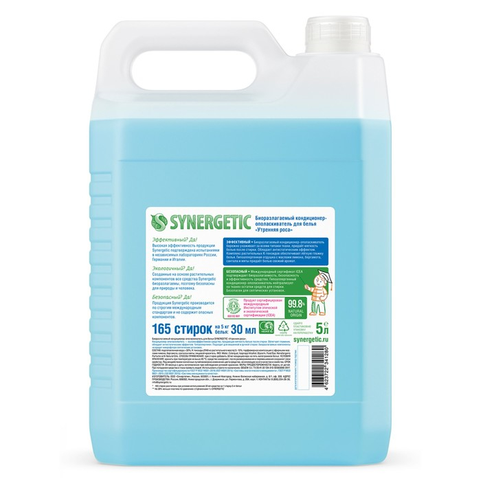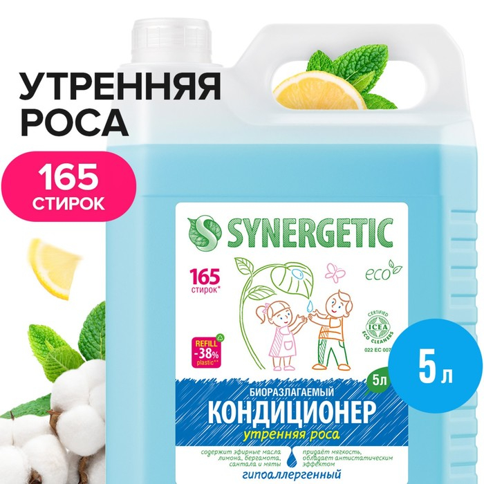 Кондиционер-ополаскиватель для белья Synergetic "Утренняя роса", биоразлагаемый,гипоаллергенный 5 л