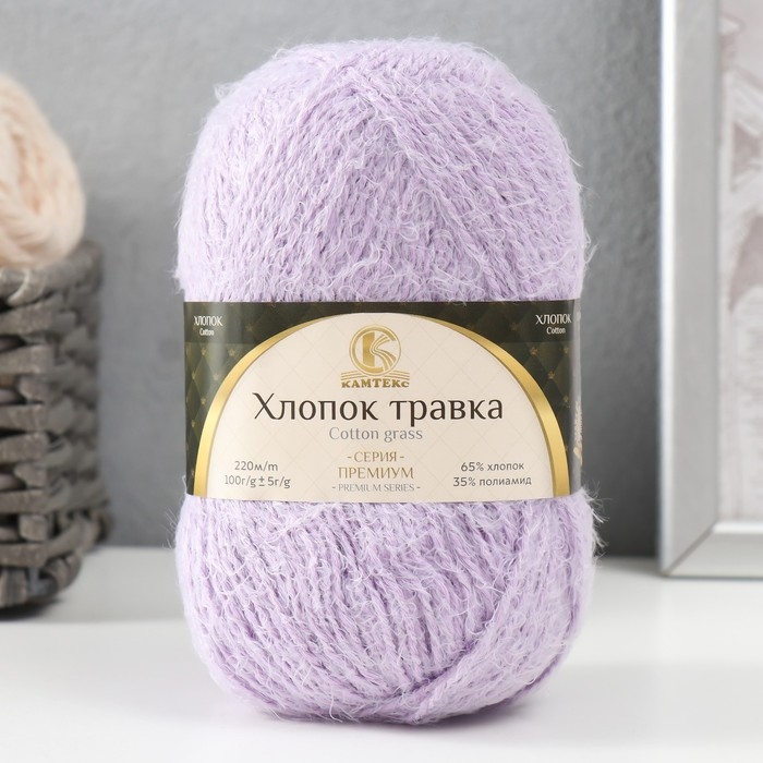 Пряжа "Хлопок травка" 65% хлопок 35% полиамид 220 м/100гр (072 лаванда)