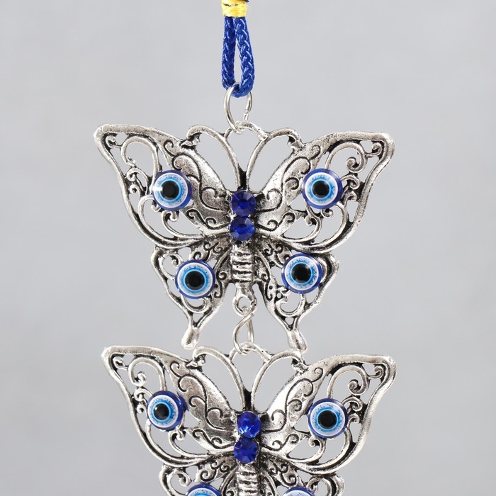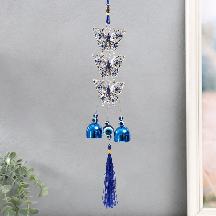 Музыка ветра металл "Три бабочки" от сглаза с кисточкой 2 колокольчика 30 см