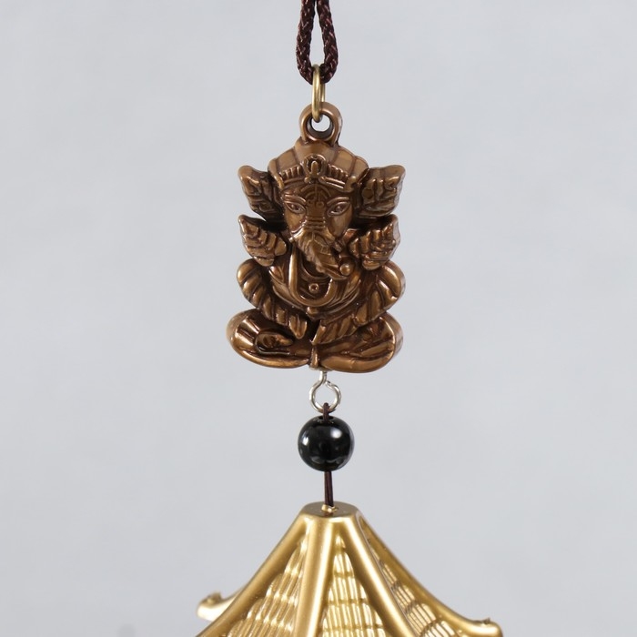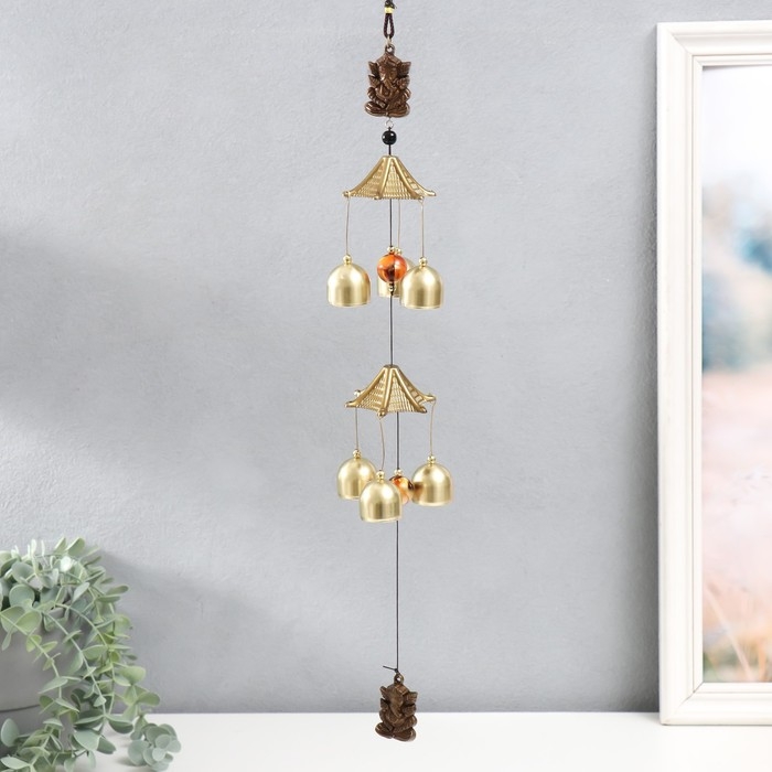 Музыка ветра металл "Ганеша" 6 колокольчиков под бронзу 42 см