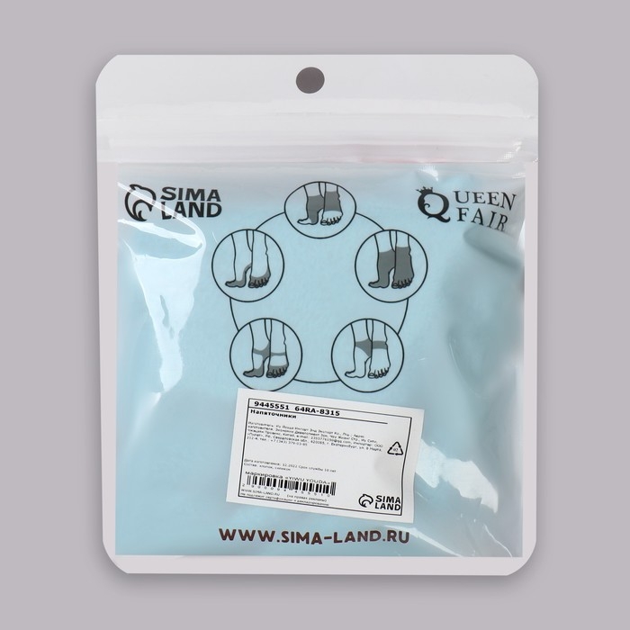 Носочки для педикюра, силиконовые, 20 × 10 см, цвет белый