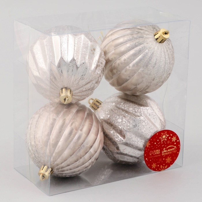 Набор шаров пластик d-8 см, 4 шт "Эйвери" полосы, серебро