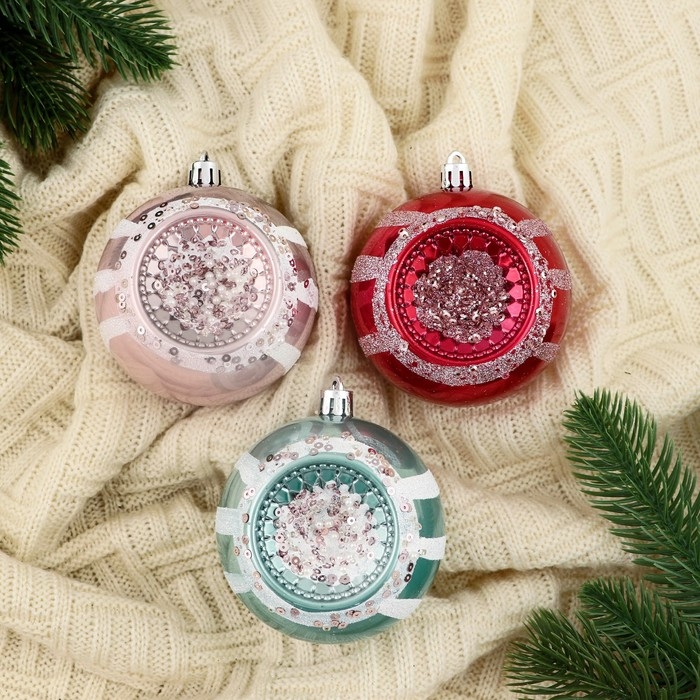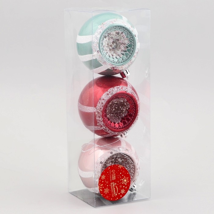 Набор шаров пластик d-8 см, 3 шт "Морозец" микс