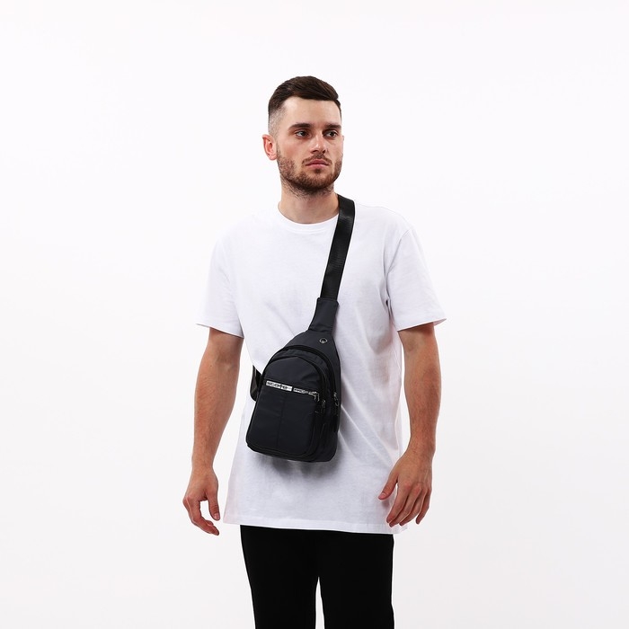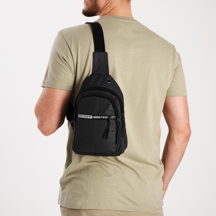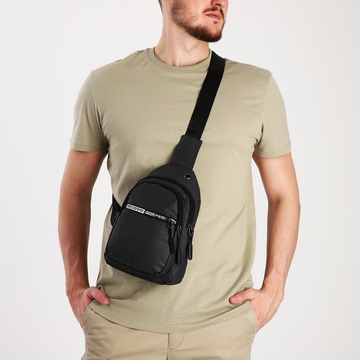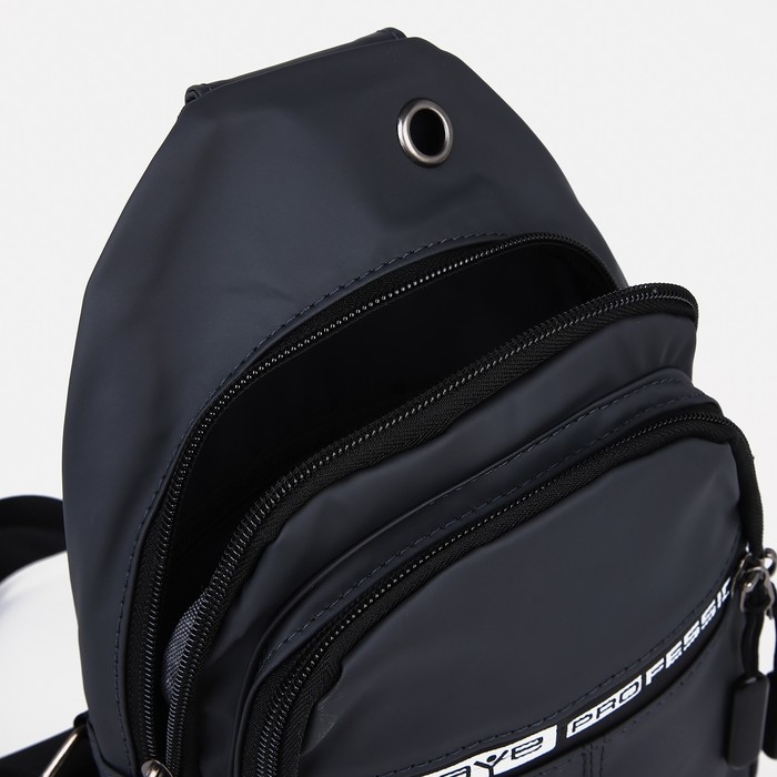 Сумка-слинг мужская из текстиля, отверстие для наушников, цвет серый