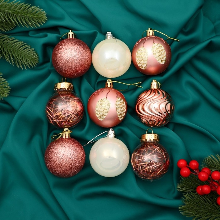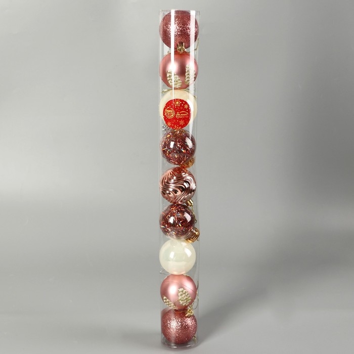 Набор шаров пластик d-6 см, 9 шт "Мелодия" диско волны шишки, белый розовый