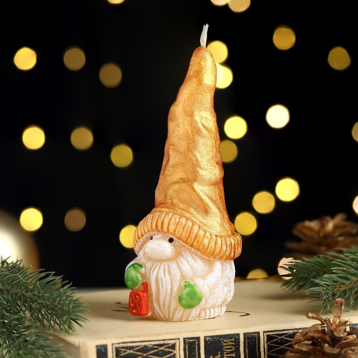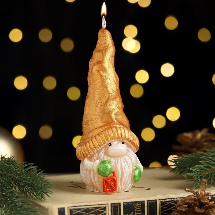 Свеча декоративная "Сказочный гномик", 5,2х5,8х13,2 см, металлик