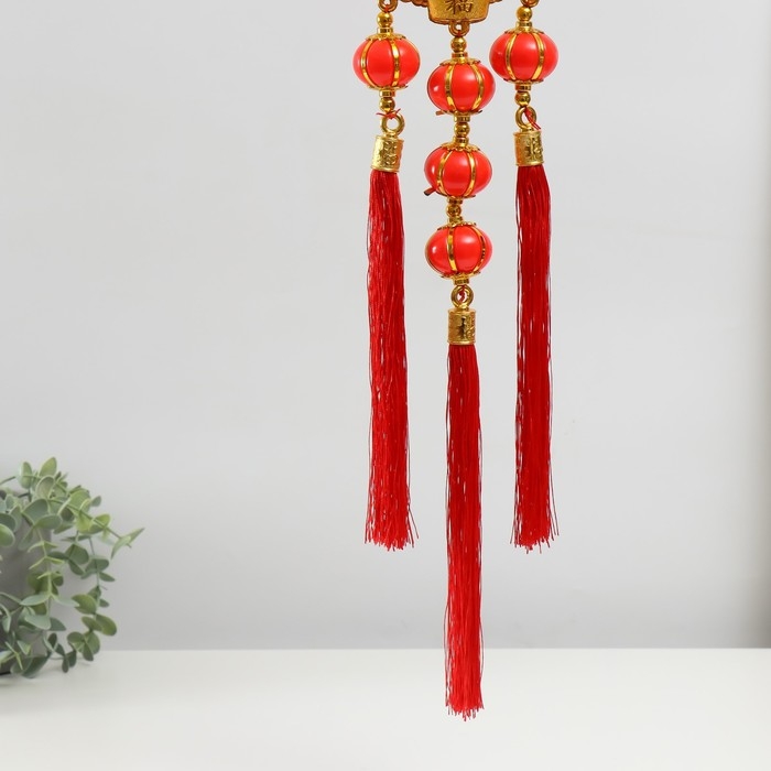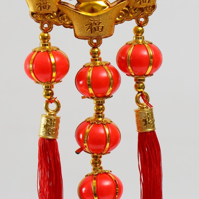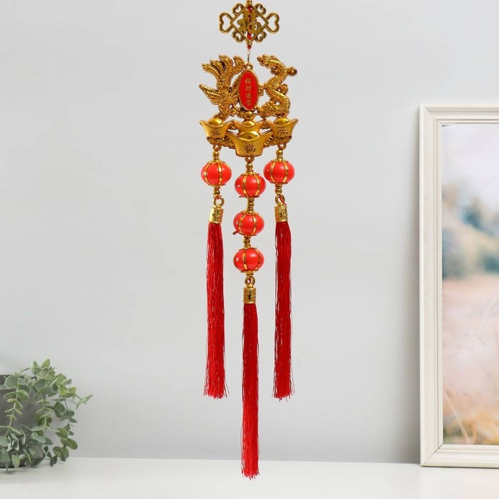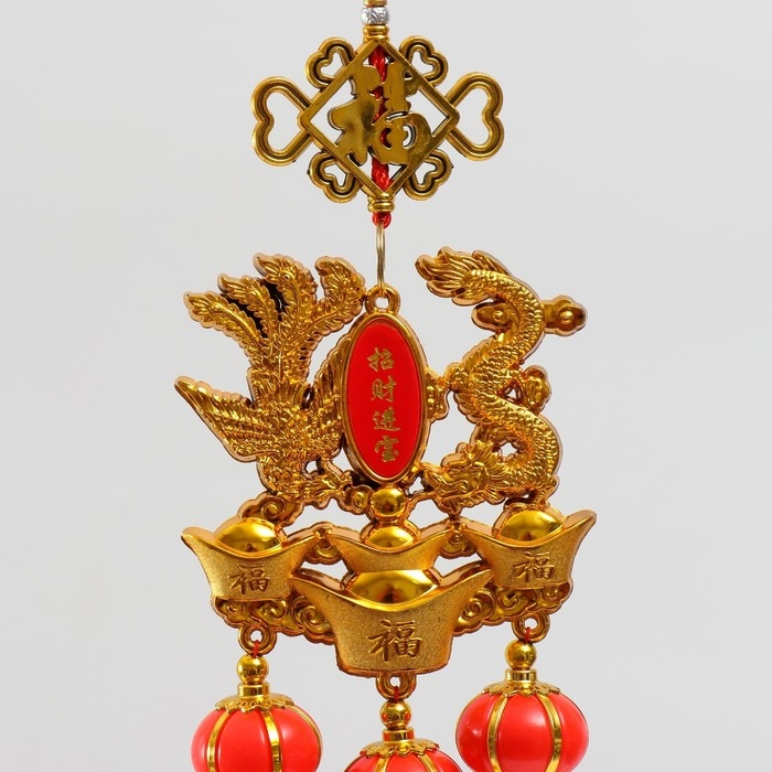Подвеска пластик, текстиль "Дракон и феникс на слитках золота" 13х66 см