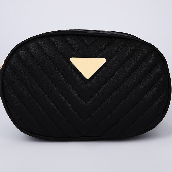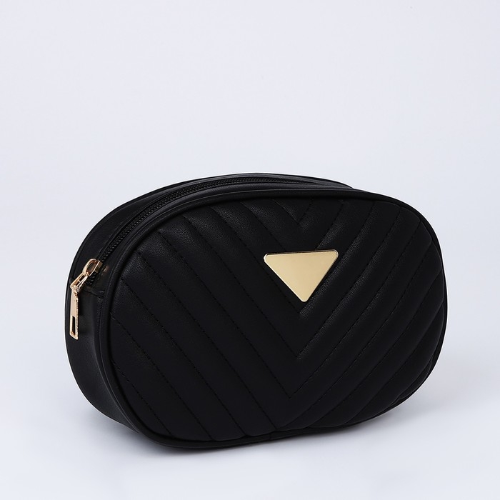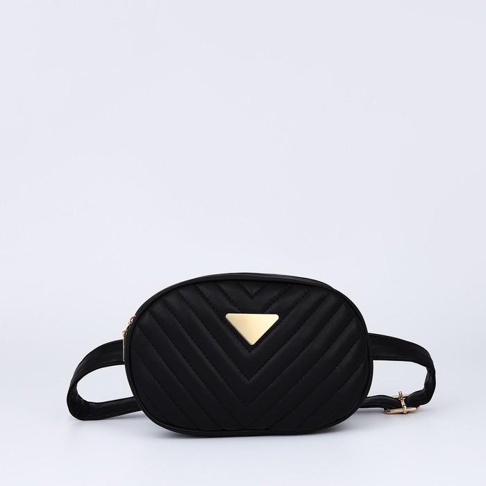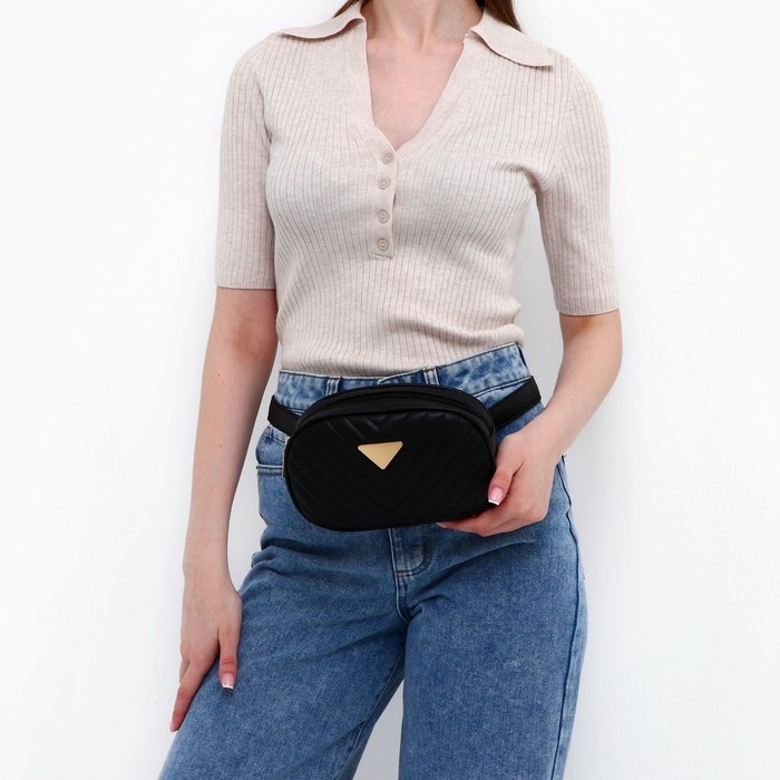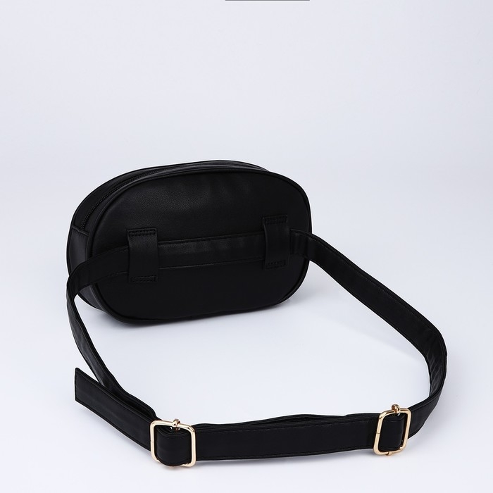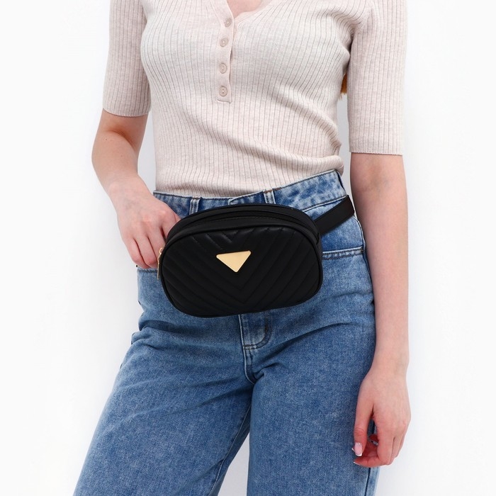 Сумка женская поясная с прострочкой 20х13х6 см, цвет чёрный