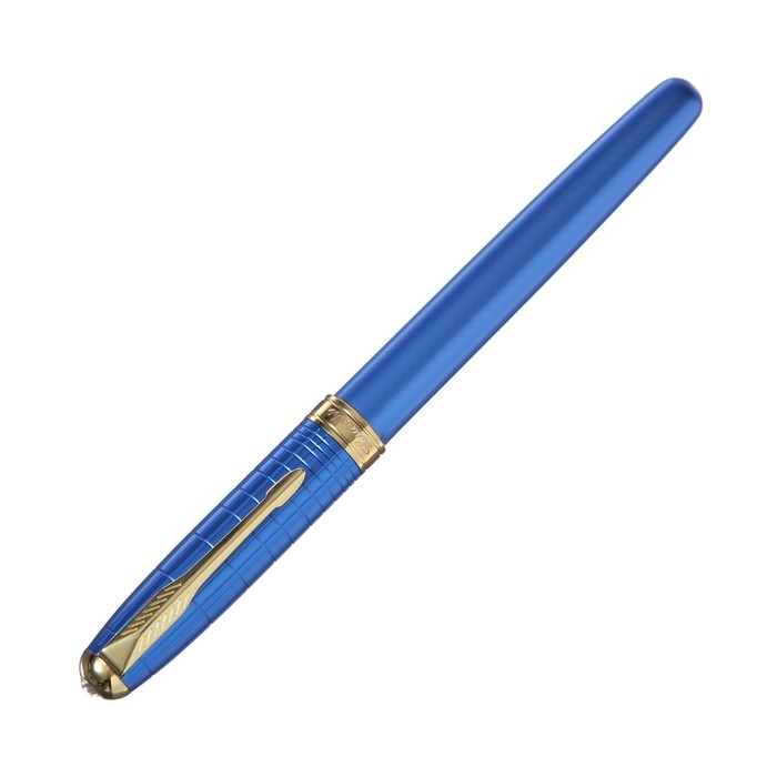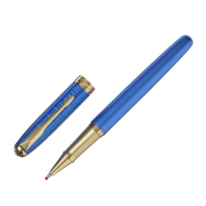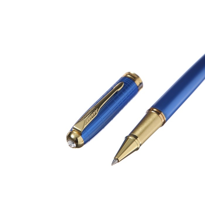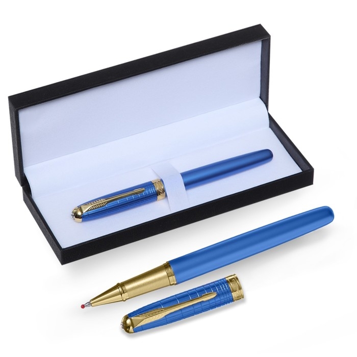 Ручка подарочная роллер, в кожзам футляре, корпус синий, золото
