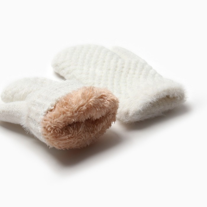 Варежки детские на иск.меху MINAKU с опушкой 15 см белый