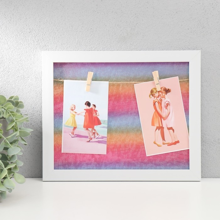 Фоторамка пластик, текстиль на 2 фото "Закат" с прищепками, белый 27,7х23 см