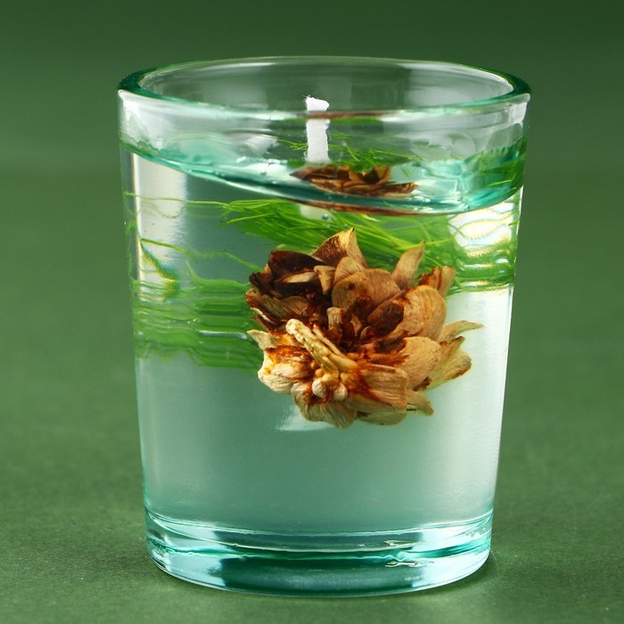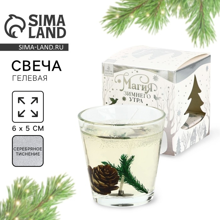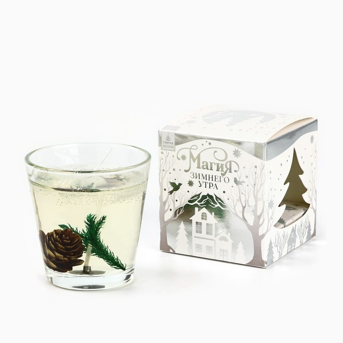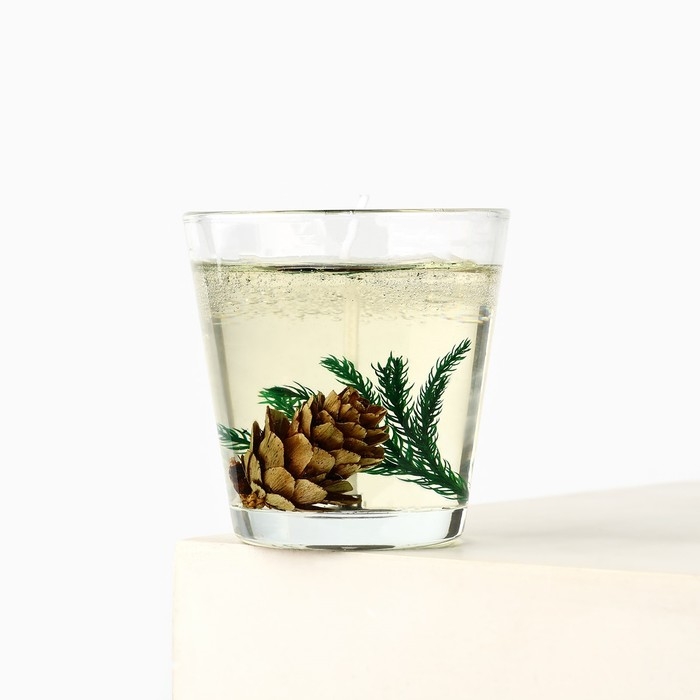 Новогодняя свеча гелевая в стакане с декором внутри «Новый год: Еловый лес» 5 х 5 х 6 см