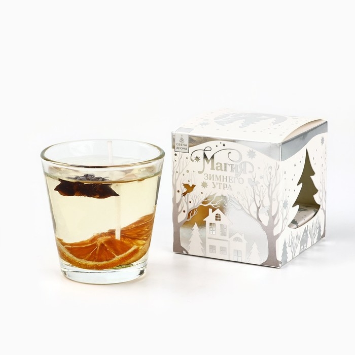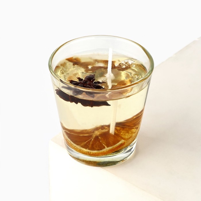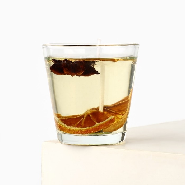 Новогодняя свеча гелевая в стакане с декором внутри «Новый год: Глинтвейн» 5 х 5 х 6 см