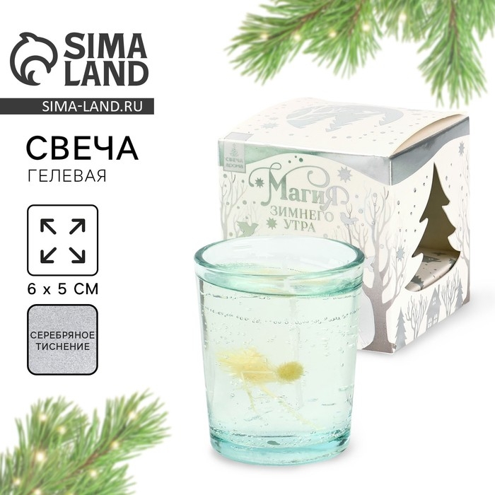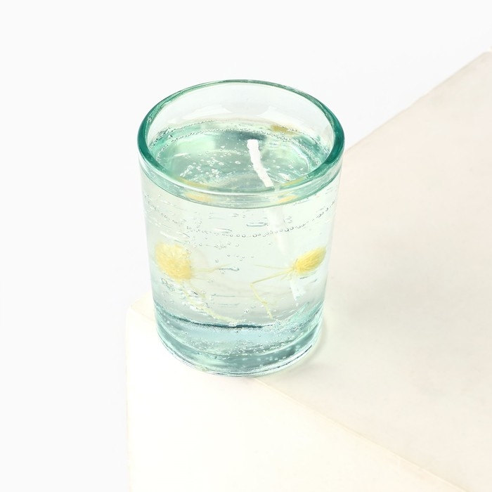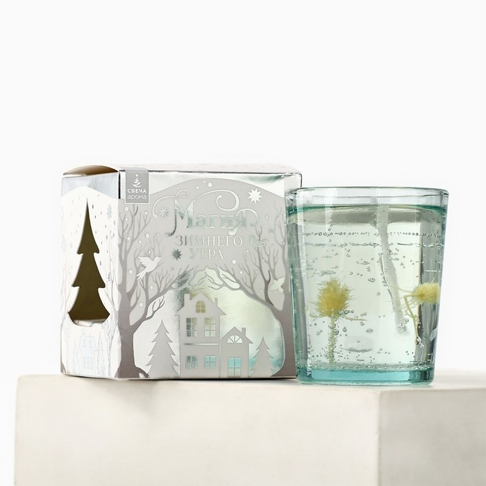 Свеча гелевая новогодняя в стакане с декором внутри «Новый год: Цветочнаяя» 5 х 5 х 6 см