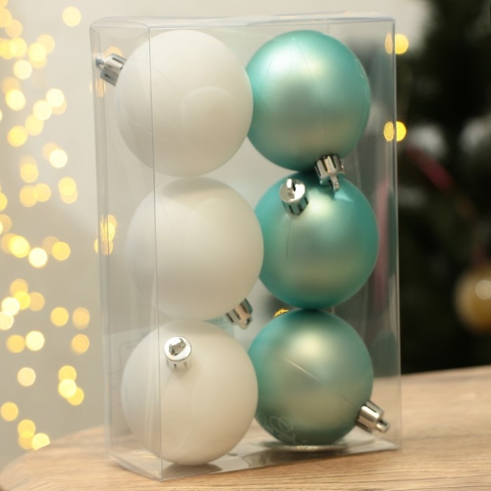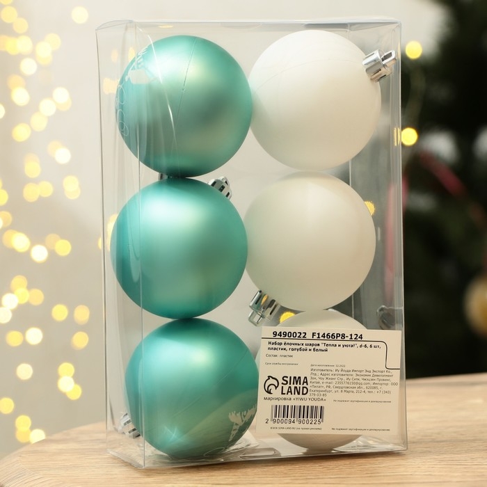 Шары ёлочные новогодние «Тепла и уюта!», на Новый год, пластик, d=6, 6 шт., цвет голубой и белый