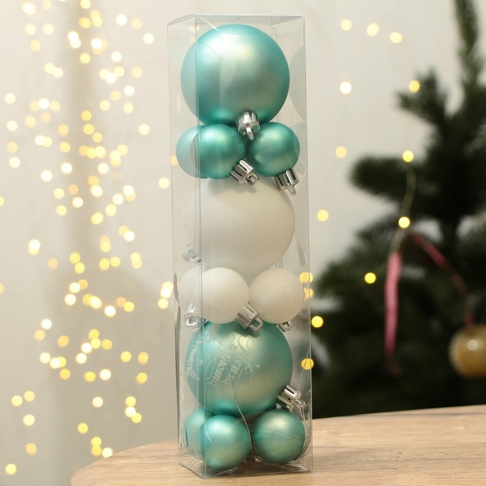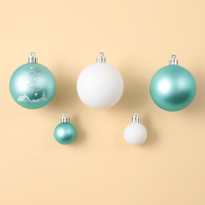 Шары ёлочные новогодние, на Новый год, d=3 и d=6, 15 шт., цвет голубой и белый
