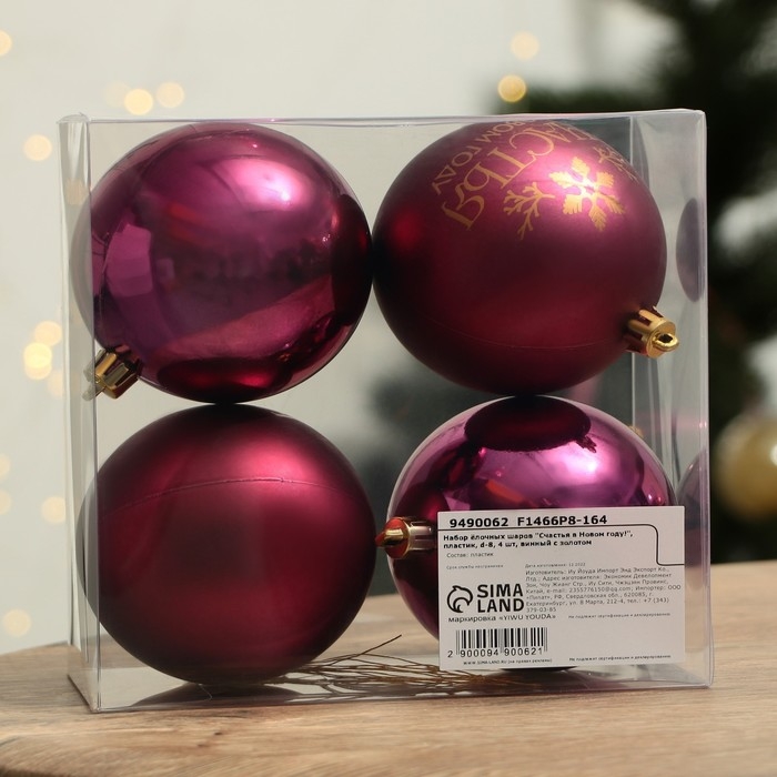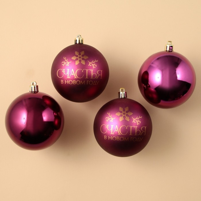 Шары ёлочные новогодние «Счастья в Новом году!», на Новый год, пластик, d=8, 4 шт., цвет винный с золотом