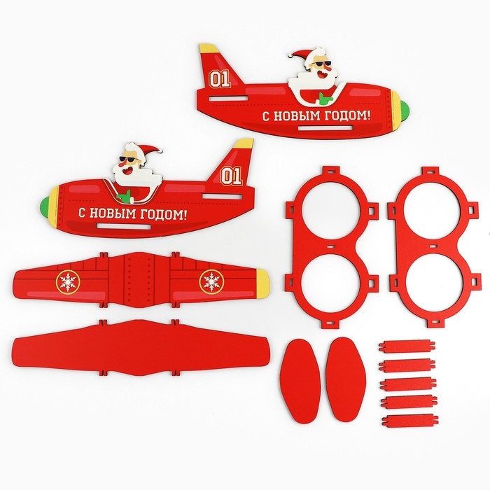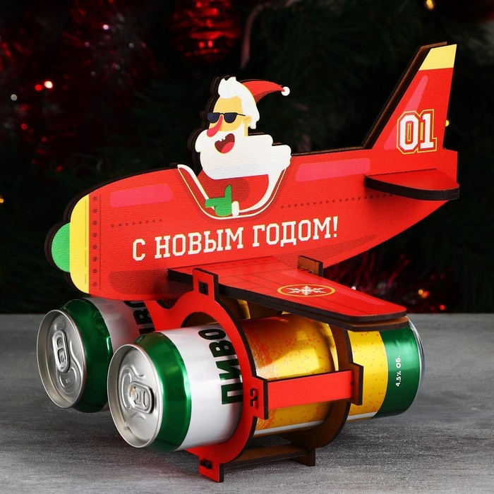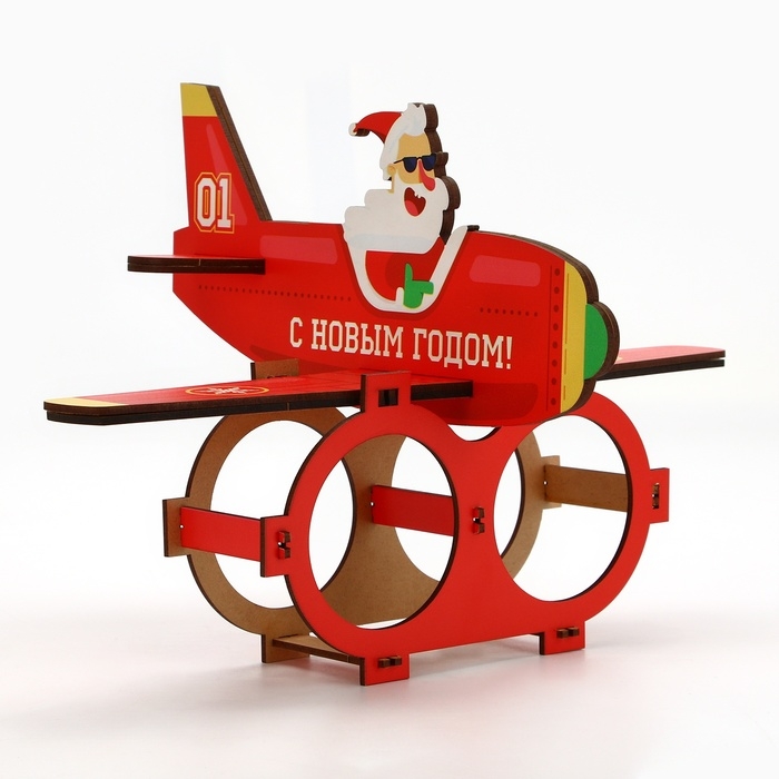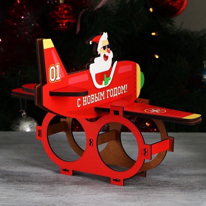 Новый год. Органайзер для хранения бутылок «Дед мороз в самолете»