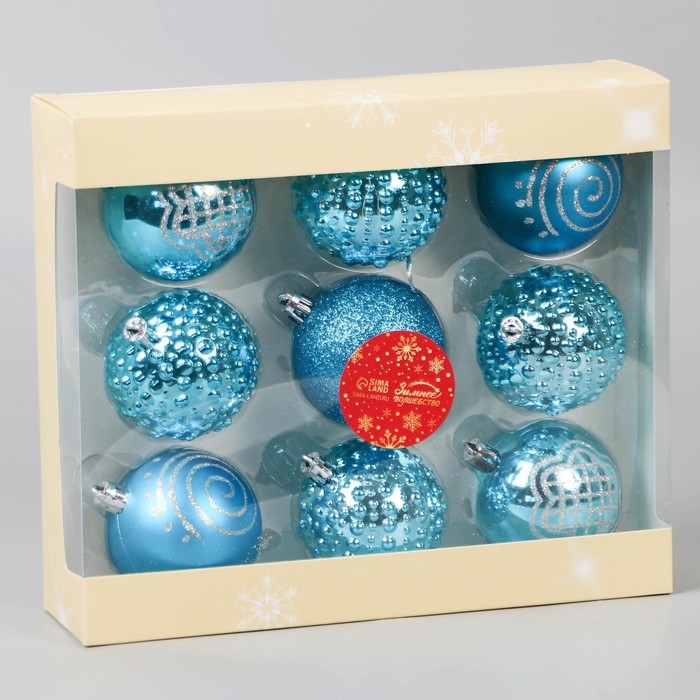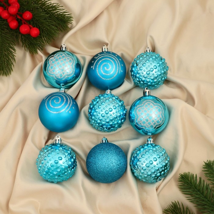 Набор шаров пластик d-6 см, 9 шт "Адель" завитки, голубой