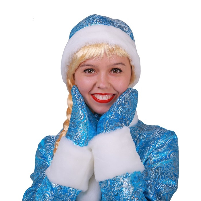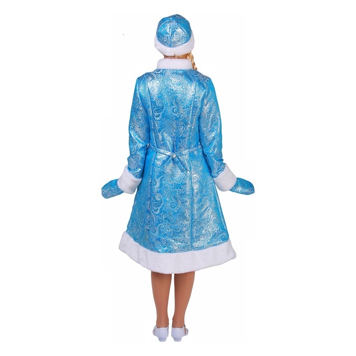 Карнавальный костюм «Снегурочка», шуба из парчи, шапочка, рукавички, цвет голубой, р. 46