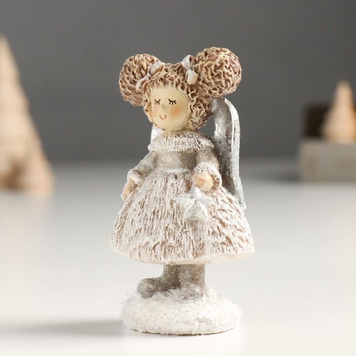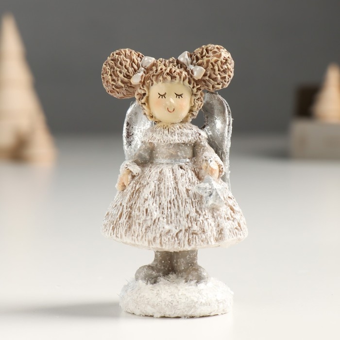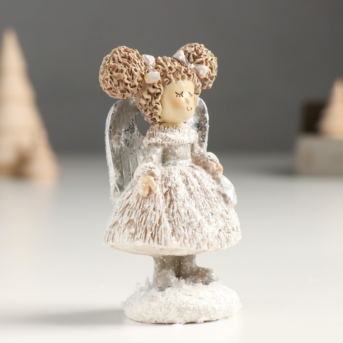 Сувенир полистоун "Малышка-ангел с хвостиками, с сердцем/звездой" серебро МИКС 4х5х9 см