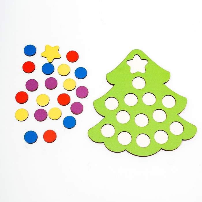 - предложите малышу расположить фигурки в основе ёлочки так, чтобы она стала одного цвета