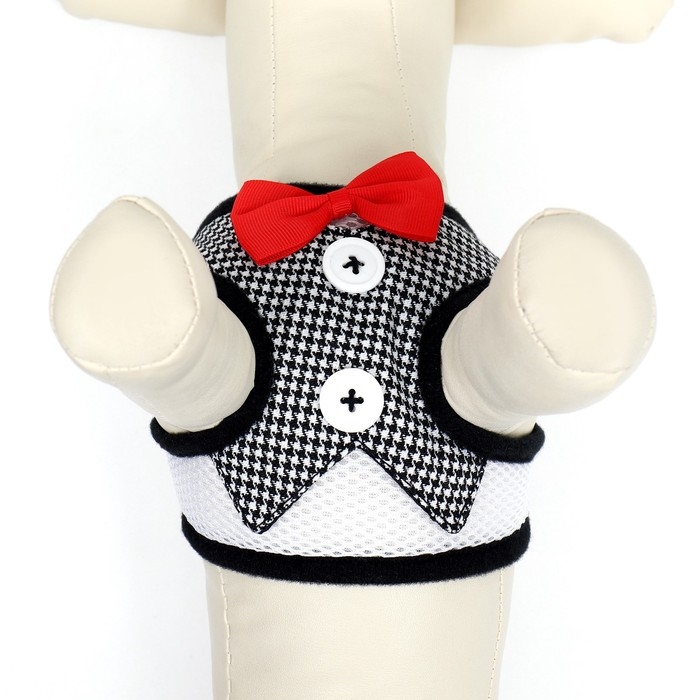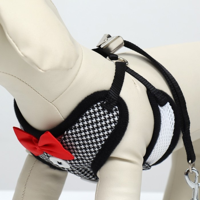 Комплект с мягкой шлейкой и бантиком , размер S, поводок 120 x 1,5 см, ОГ 23-42 см, серый