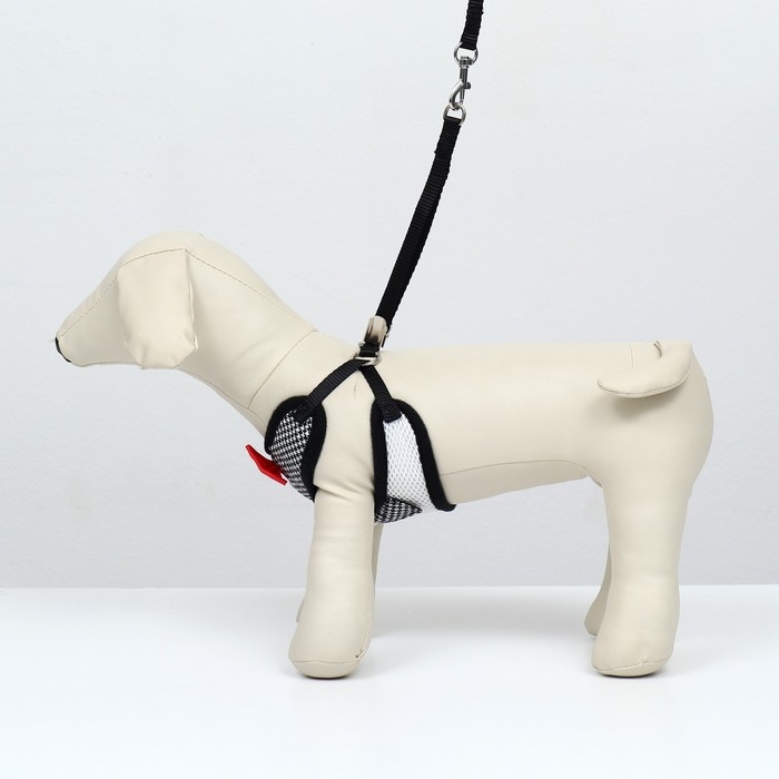 Комплект с мягкой шлейкой "Клетки", размер L, поводок 120 х 1,5 см, ОГ 42-76 см, красный