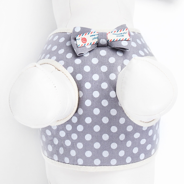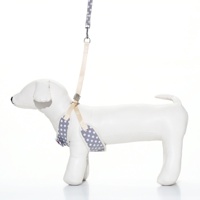 Комплект с мягкой шлейкой "Горох", размер L, поводок 120 х 1,5 см, ОГ 42-76 см, серый