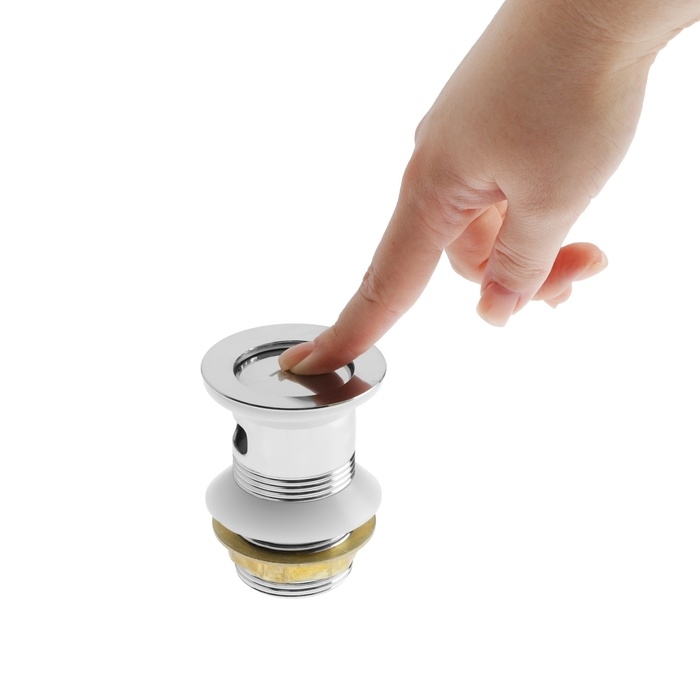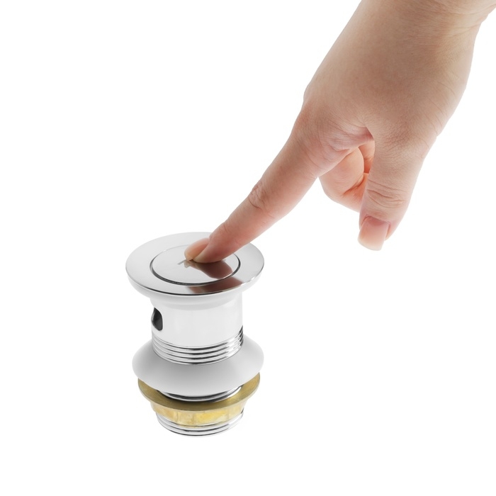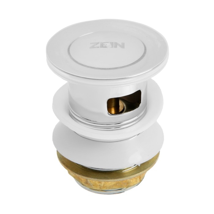 Донный клапан ZEIN BP1, 1 1/4", маленькая кнопка, с переливом, для раковины, хром