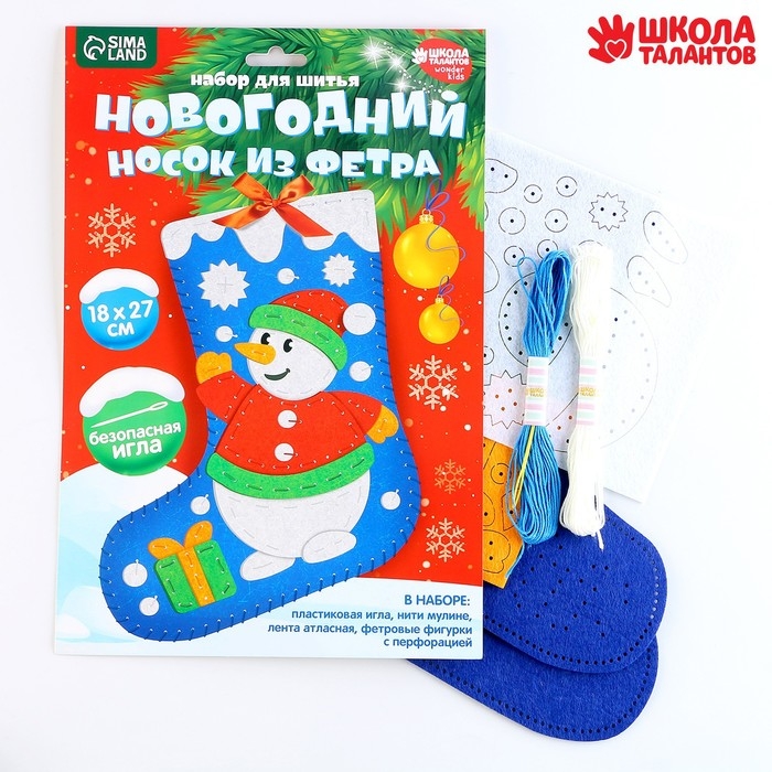 Новогондний набор для шитья. Носок из фетра «Новый год! Снеговичок», 18 х 27 см