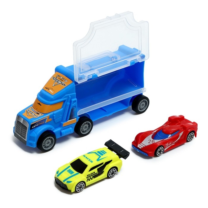 - У техники открывается боковая панель кузова, из которого можно достать две гоночных машинки.