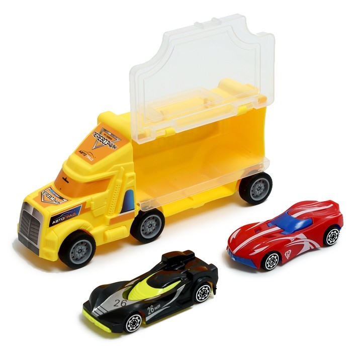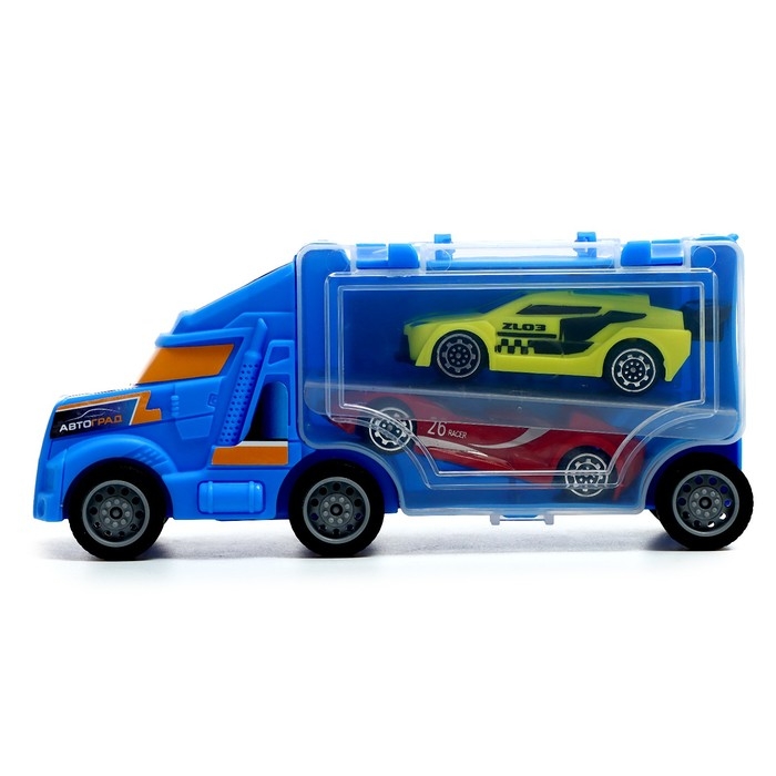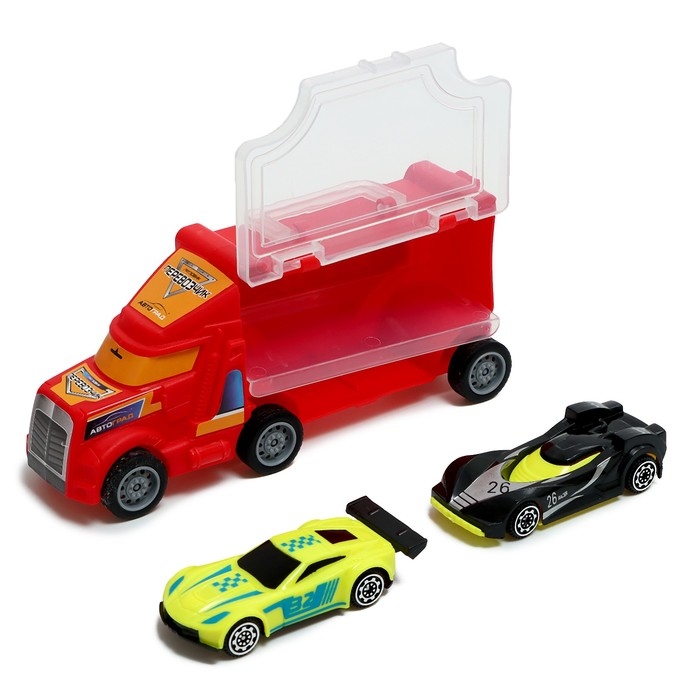 Грузовик инерционный «Автовоз», 2 машинки и 2 паровоза, цвета МИКС