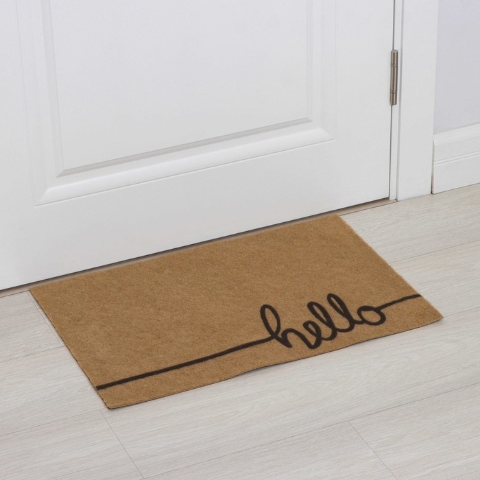 Коврик придверный Доляна Hello, без окантовки, 40×60 см, цвет бежевый