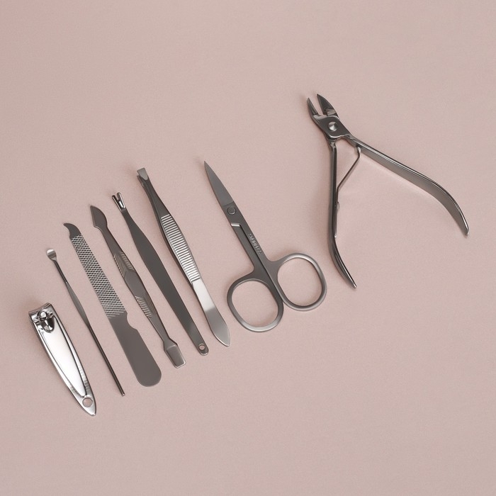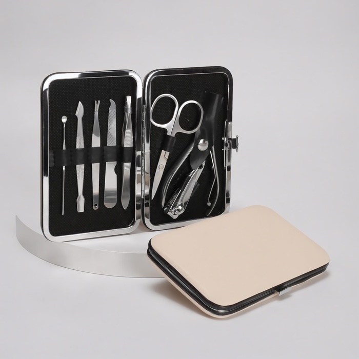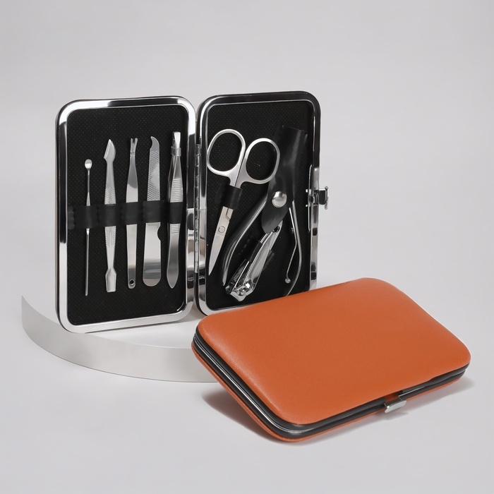 Набор маникюрный, 8 предметов, в футляре, цвет коричневый