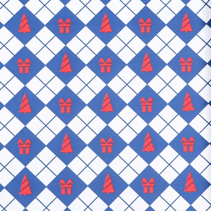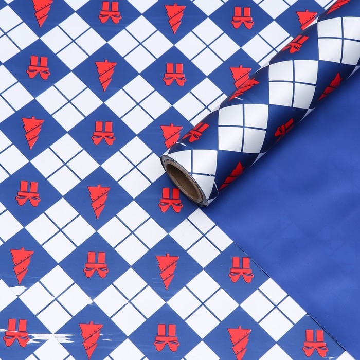 Пленка для цветов, "Новогодний калейдоскоп", синяя 56см*10м